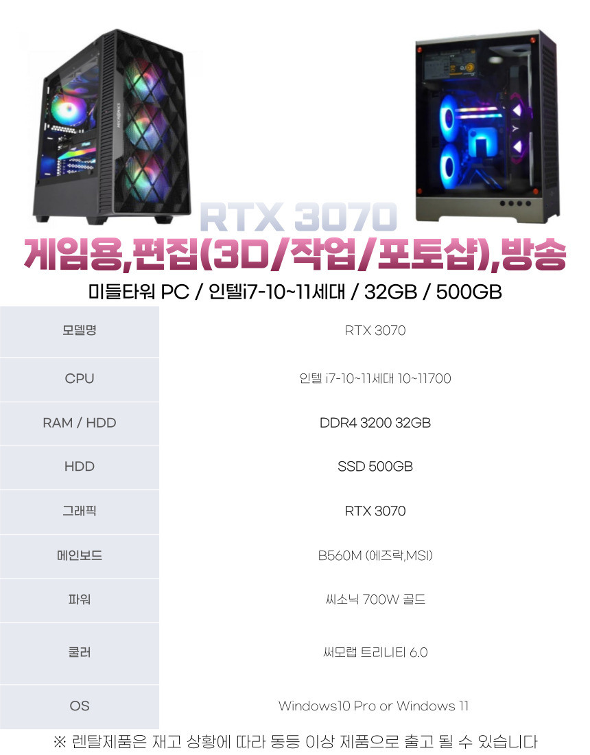 게이밍 베그 오버워치 발로란트 RTX3070 컴퓨터렌탈