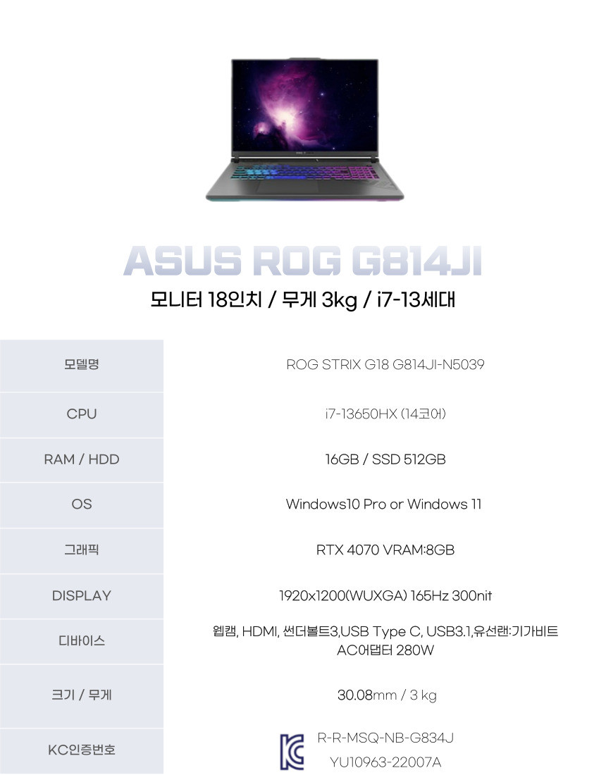 아수스 i7 13세대 RTX4070 17형 프리미어프로 포토샵 노트북렌탈