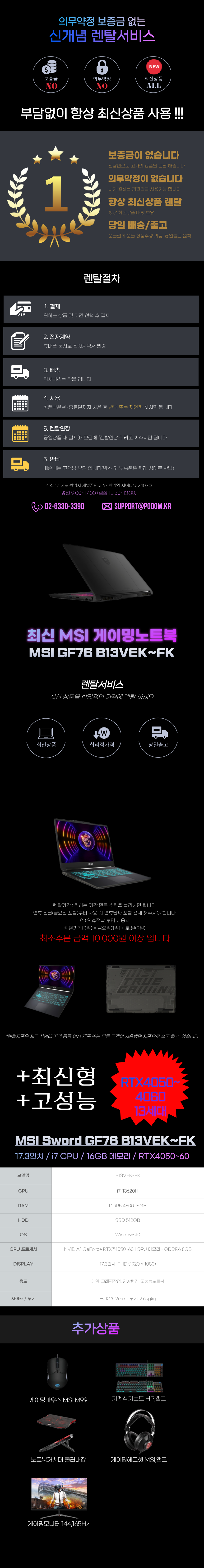 MSI I7(13세대) RTX4050,4060 B13VEK~fk 단기 렌탈