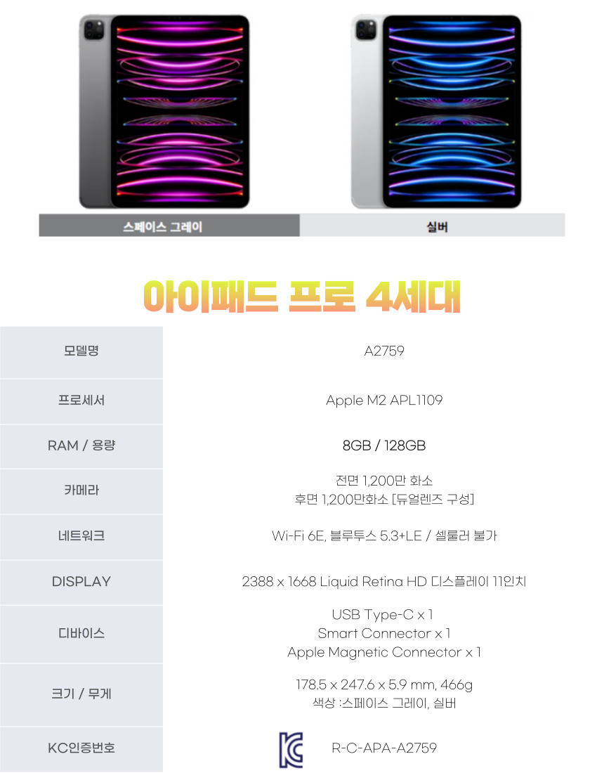 최신 애플 아이패드프로 4세대(11인치) 월렌탈