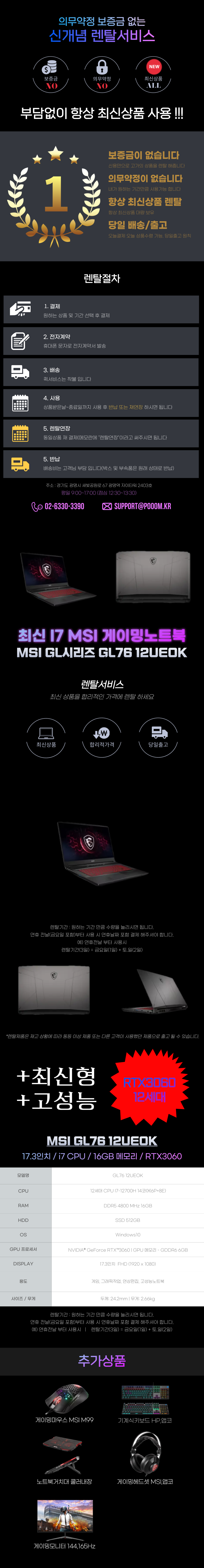 고사양 MSI 아수스 게이밍 노트북 렌탈