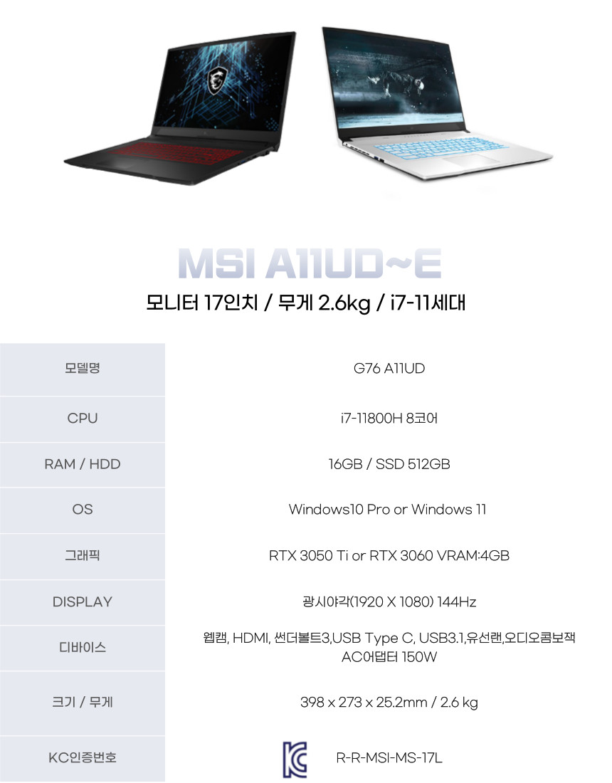 해당 스펙에 맞는 노트북으로 출고 됩니다