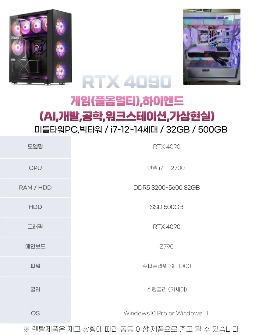 I7 14세대 CPU 컴퓨터 RTX4090 게이밍PC 대여