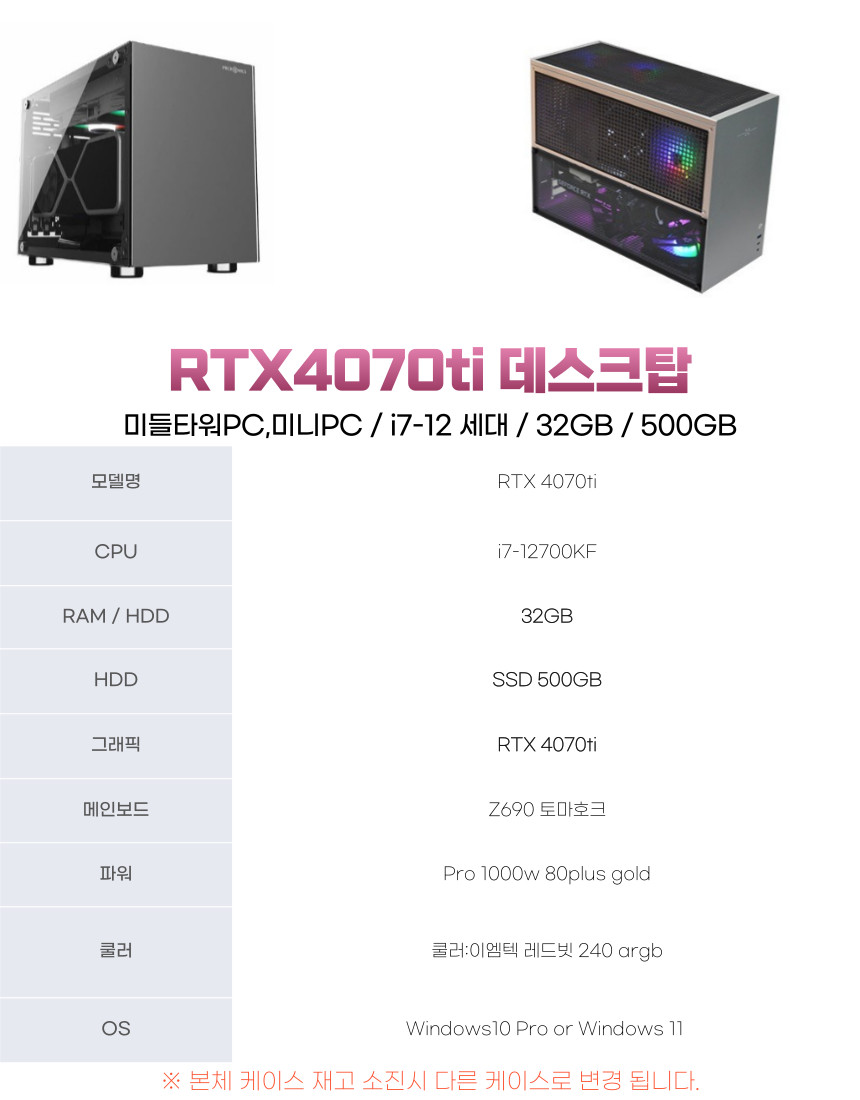 게이밍컴퓨터렌탈 i7-12세대 RTX4070ti 고사양 pc 대여