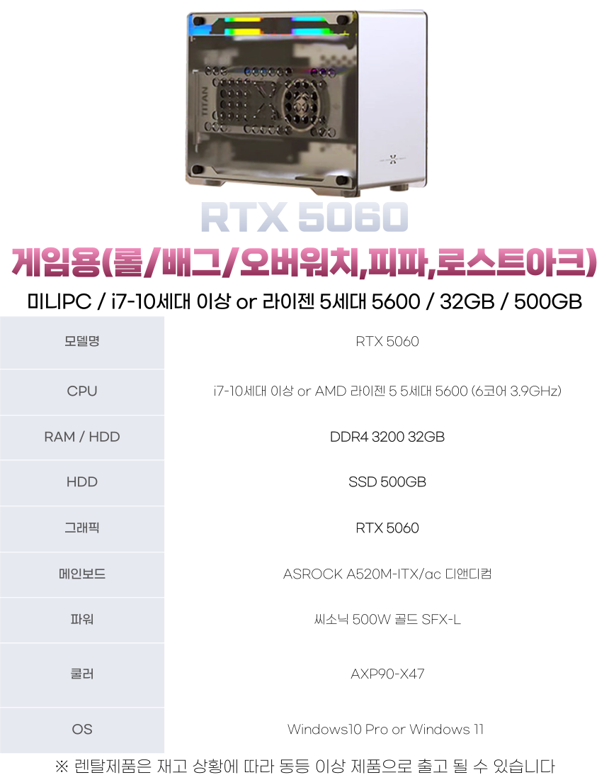 컴퓨터렌탈 RTX5060 최신게이밍 pc 렌탈