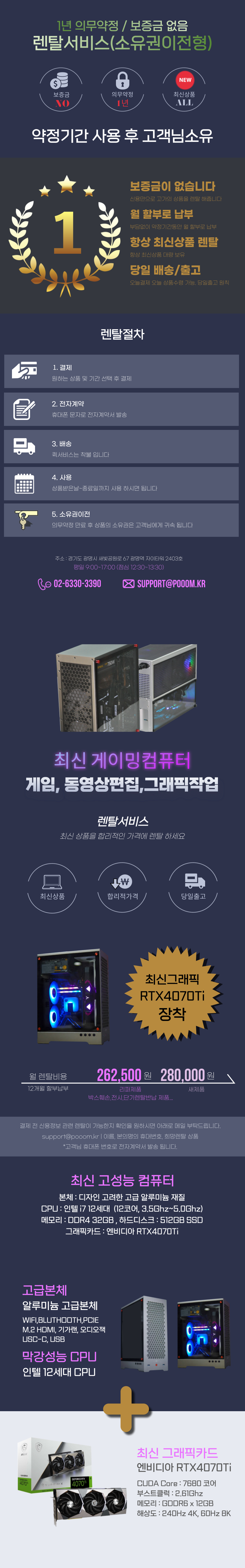 [렌탈]게임밍컴퓨터 12세대 I7 CPU RTX4070ti 1년약정 소유권이전형 월 할부