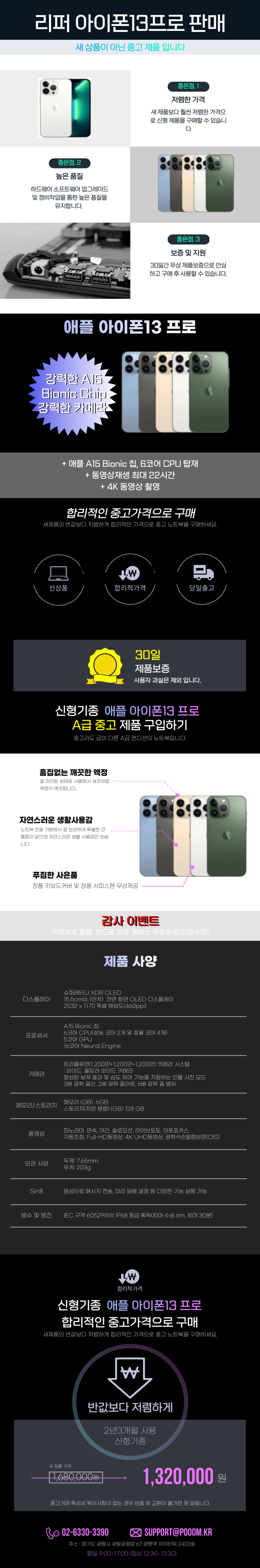 [중고]리퍼 애플 아이폰13프로 자급제 공기계 S급 스마트폰