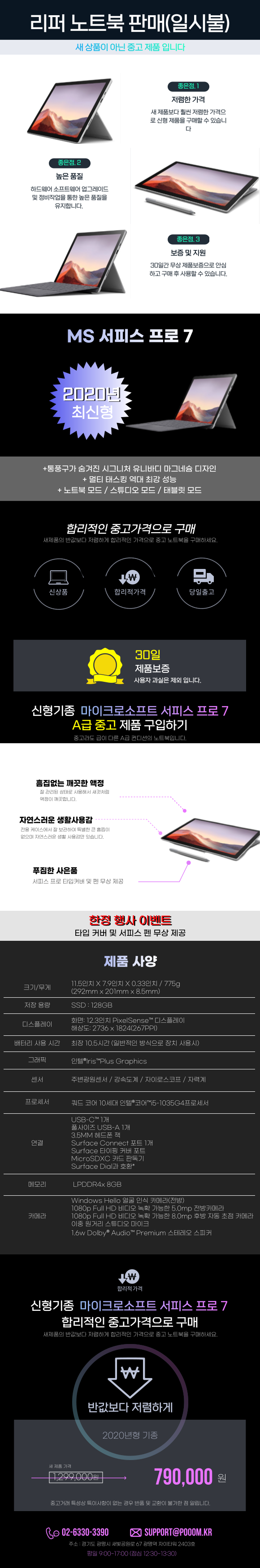 [중고]마이크로소프트 서피스프로7 리퍼 태블릿PC 노트북(펜/키보드커버)