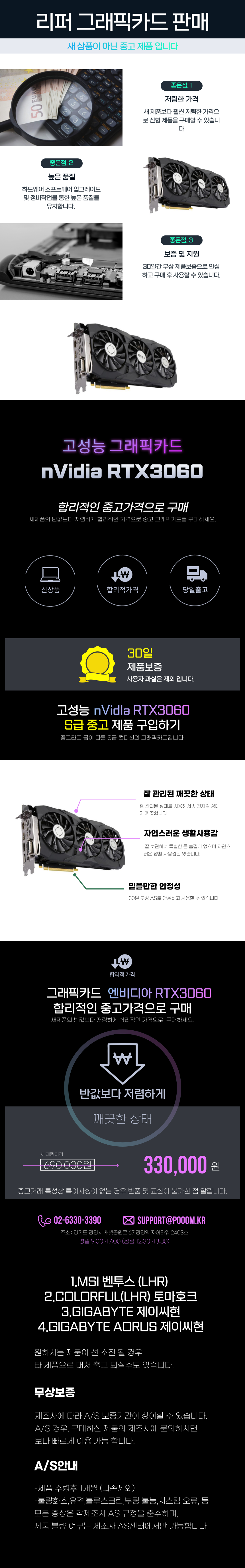 [중고]S급리퍼 RTX3060 NVIDIA GPU 12G / LHR 그래픽카드 판매
