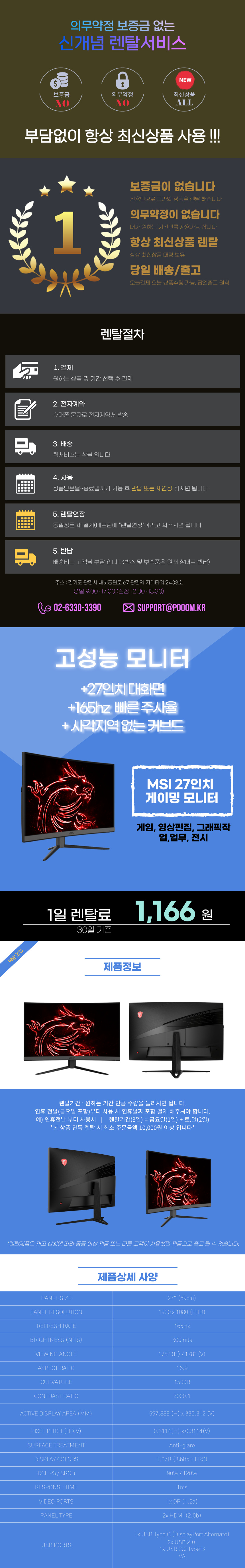 27인치모니터 MSI 3CA5 게이밍 165hz 커브드 monitor