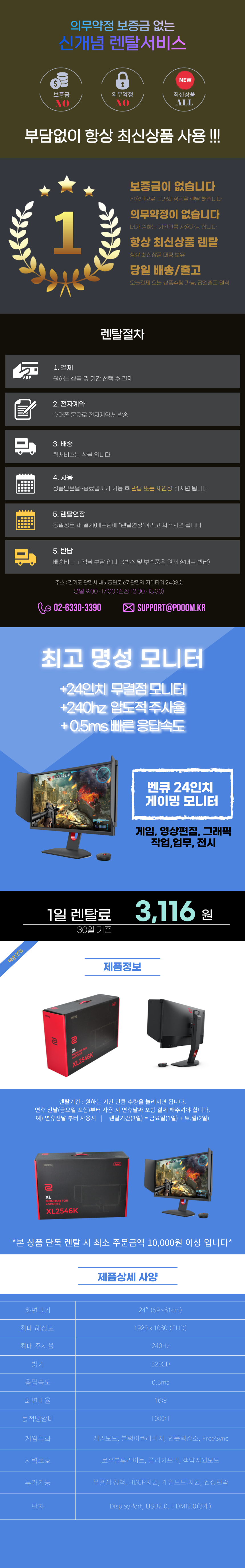 벤큐모니터 24인치 240hz 게이밍 XL2546K 렌탈