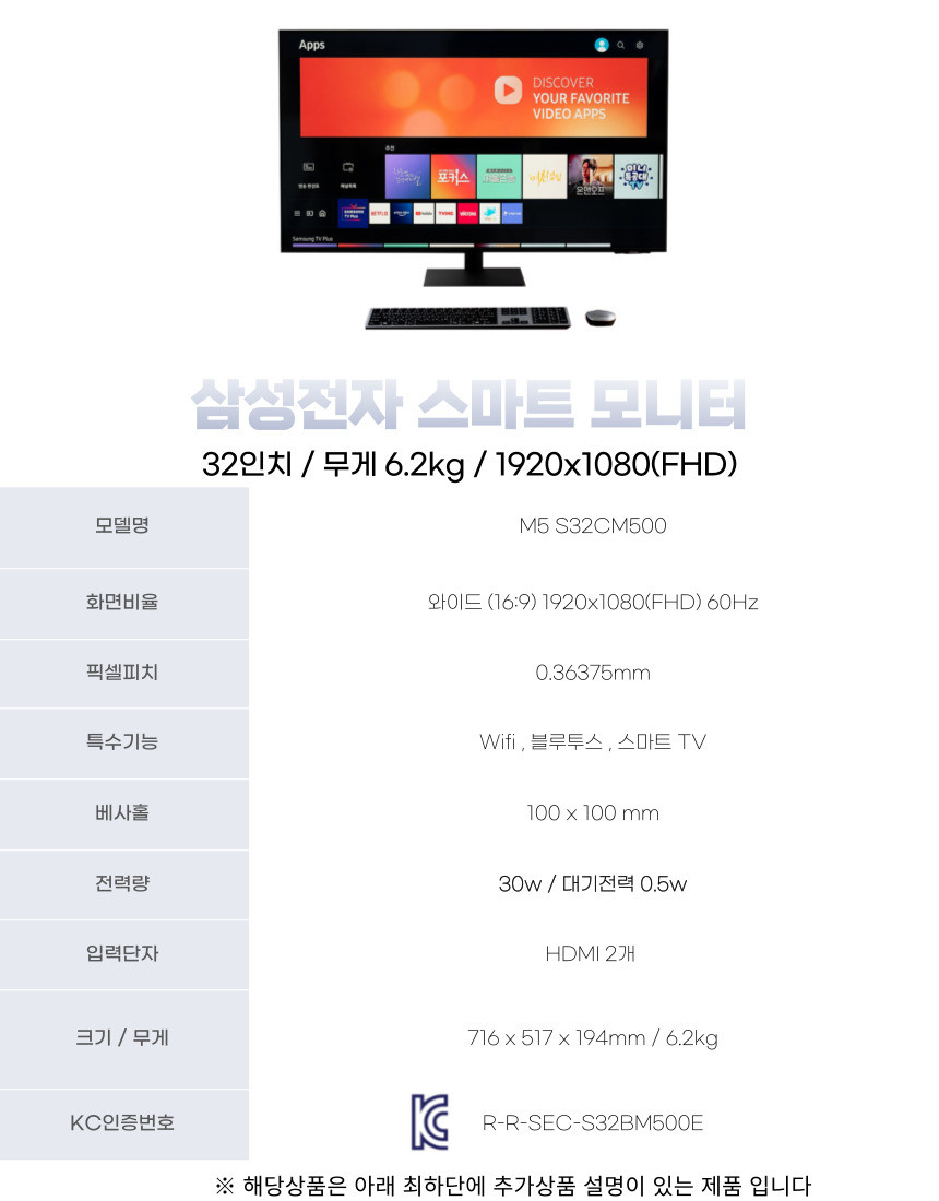 삼성전자 스마트모니터 32인치 4K TV S32BM701- 1일 렌탈