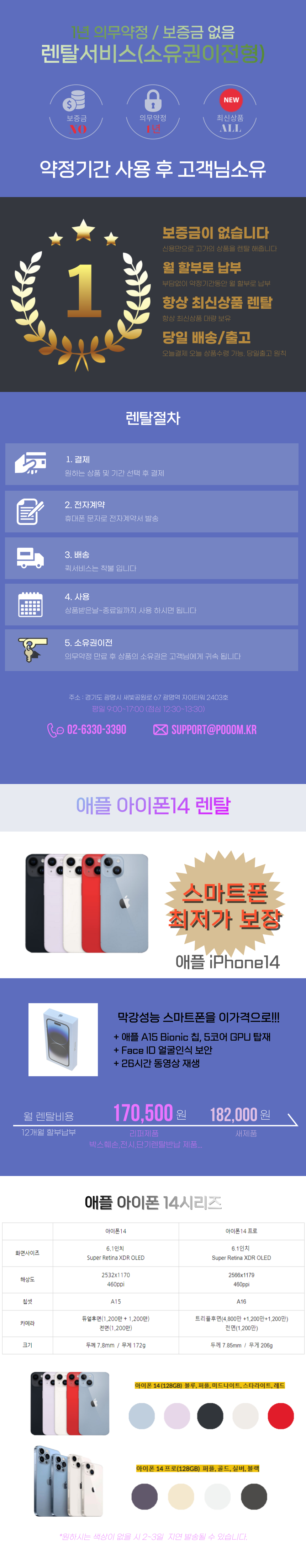 [렌탈]최신 아이폰14 월 할부납부 1년약정 인수형