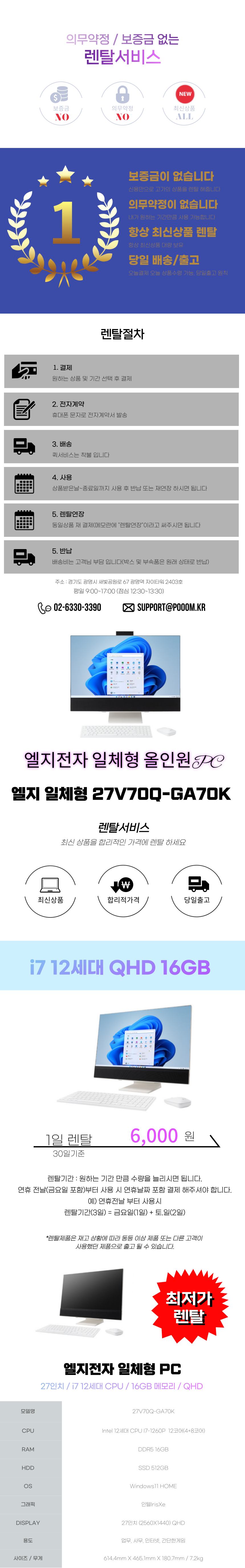 LG 올인원 pc 27인치 일체형 컴퓨터렌탈