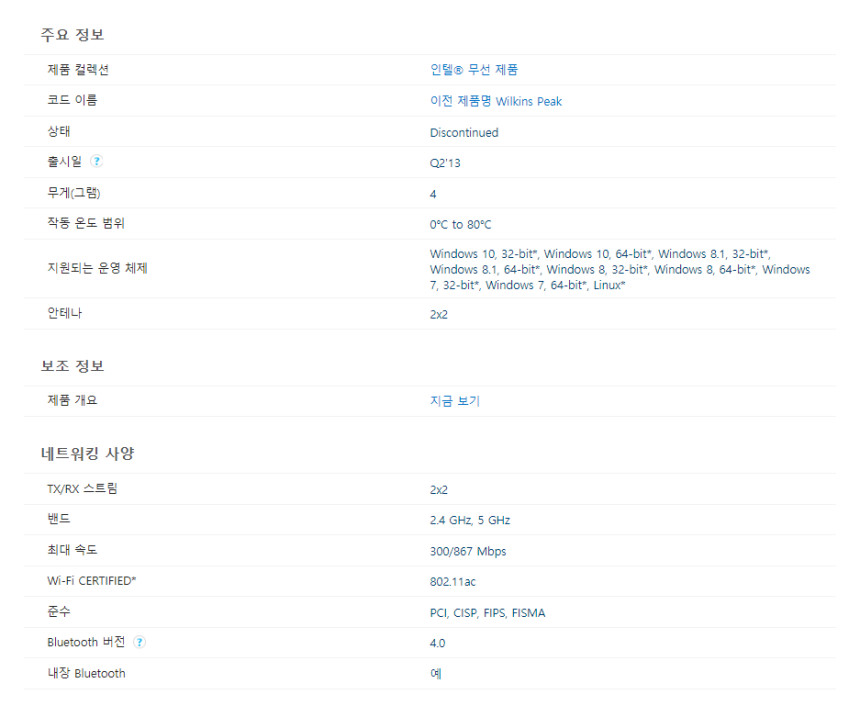 인텔® 듀얼 밴드 Wireless-AC 7260 (AC7260NGW)