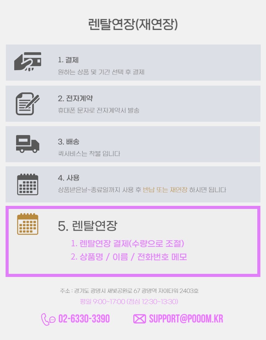 렌탈 하셨던 상품 클릭후 임대기간 에서 날짜 선택후